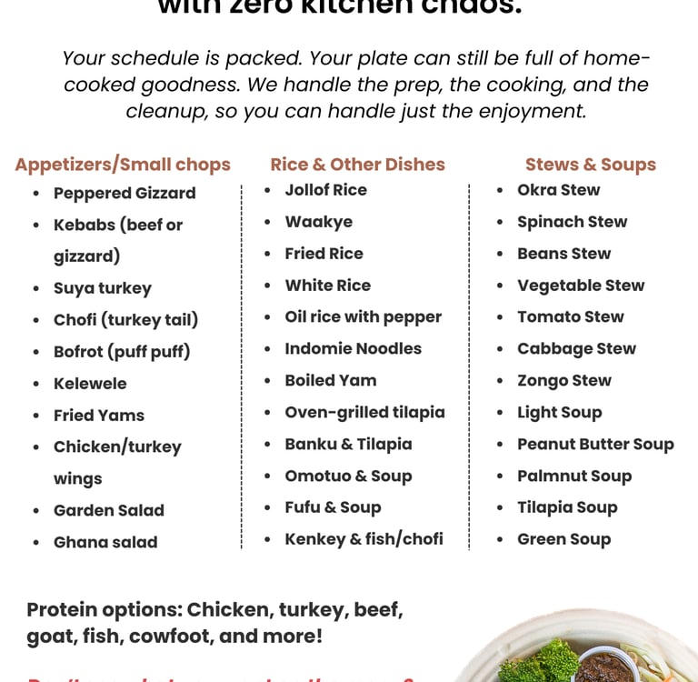 Your schedule is packed. Your plate can still be full of home-cooked goodness. We handle the prep, the cooking, and the cleanup, so you can handle just the enjoyment.